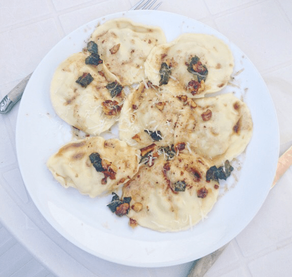 I’ve made butternut squash filling before, just be careful because if it’s under seasoned, it’ll taste like baby food. To remedy this, I would add a bit of blue cheese to complement the walnuts and sage sauce.