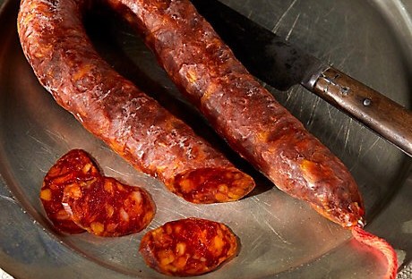 - Chorizo. On anything. In anything. What else is going to make the fat in your pan go orange? Or what else am I going to snack on raw even when himself tells me off for doing so? Washed down with a litre of sangria it’s heaven.
